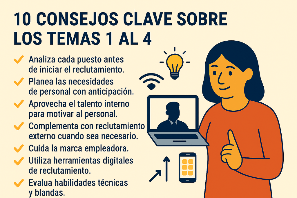Los temas 1 al 4 del módulo 1 nos permiten entender cómo se construye la base del capital humano dentro de una organización: desde la comprensión del talento, pasando por el origen de las vacantes, el proceso de contratación, hasta la evolución y los tipos de reclutamiento. A continuación, se desarrolla cada uno de estos puntos de manera clara, cercana y con ejemplos que facilitan su comprensión.